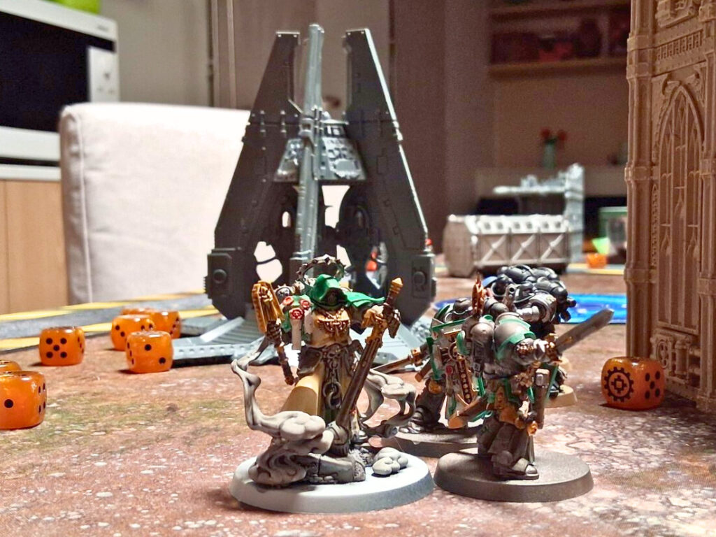 Le format 2 vs 1 (Dark Angels + Grey Knights contre Tyranides) a très bien tourné. L’équilibre était globalement bon, même si les Grey Knights n’avaient que trois unités, et la perte d’une d’entre elles dès le tour 1 a réduit son temps de jeu.